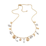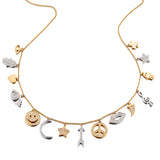 The Diamond Charmed necklace was inspired by motifs and talismans full of positivity, light and strength and the necklace was born. Wearing the necklace makes you feel happy. It's whimsical, fun, and effortless to wear with a tee and jeans or a white crisp blouse with a blazer and slacks.