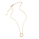 The Circle Silhouette Diamond necklace symbolizes an abundance of eternall love. A simple yet charming necklace that sparkles and radiates with any outfit.
