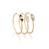 The universally popular evil eye talisman has become a favorite design among our customers. Ward off any misfortunes with our newest addition of petite diamond enamel evil eye rings. Currently offered in white, black or powder blue enamel. Wear a single ring or all three for triple the protection.