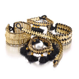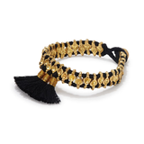 MADU by Madhuri Parson is known for a luxe bohemian spirit captured in a statement piece. This intricately crafted playful bracelet features a contrasting woven design finished with a trio tassel detail. Created to be worn alone or stacked or together with your bracelets.